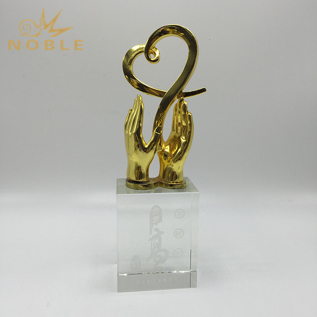 Decorative Gold Love Metal Trophy with Clear Crystal Base