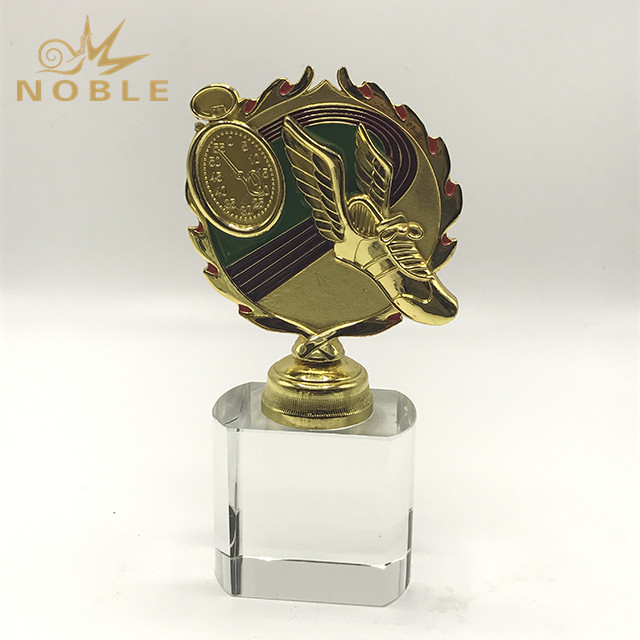 Gold Metal Running Trophy with Clear Crystal Base