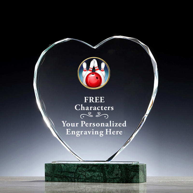 Hot Selling Custom Engraving Sports Champion Bowling Award Crystal Souvenir Heart Trophy