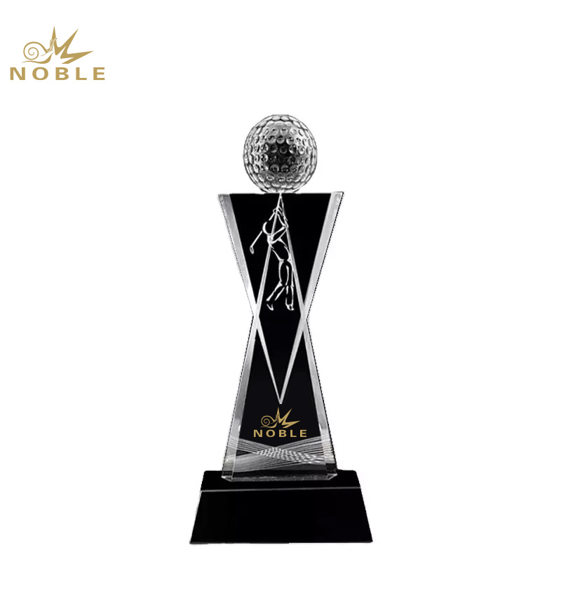 Noble High Quality Crystal Golf Ball With Metal Golfer Sports Awards Custom Bespoke Logo Golf A Hole in One Trophy Hand Craft