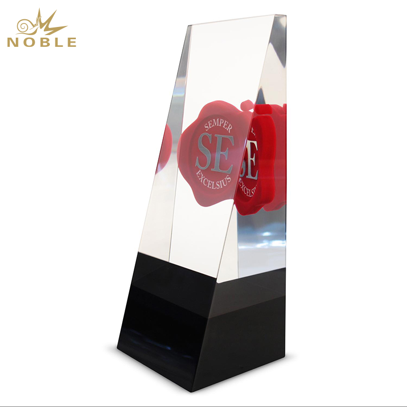A wax seal recreated from a 3D printer featuring the words semper Excelsius was unbedded in this two-town custom acrylic award