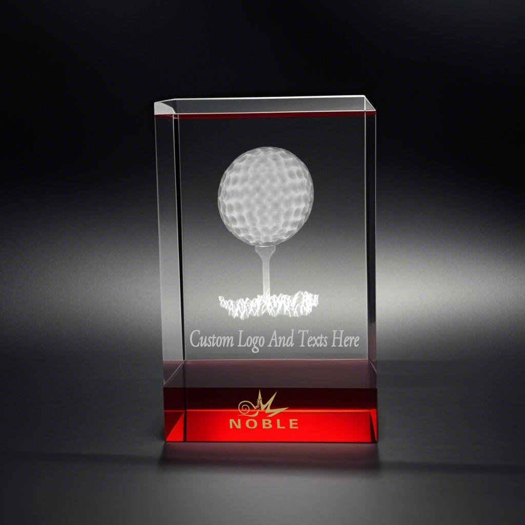 Noble High Quality 3D Laser Crystal Cube Golf Ball Golfer Sports Awards Custom Bespoke Logo Golf A Hole in One Trophy