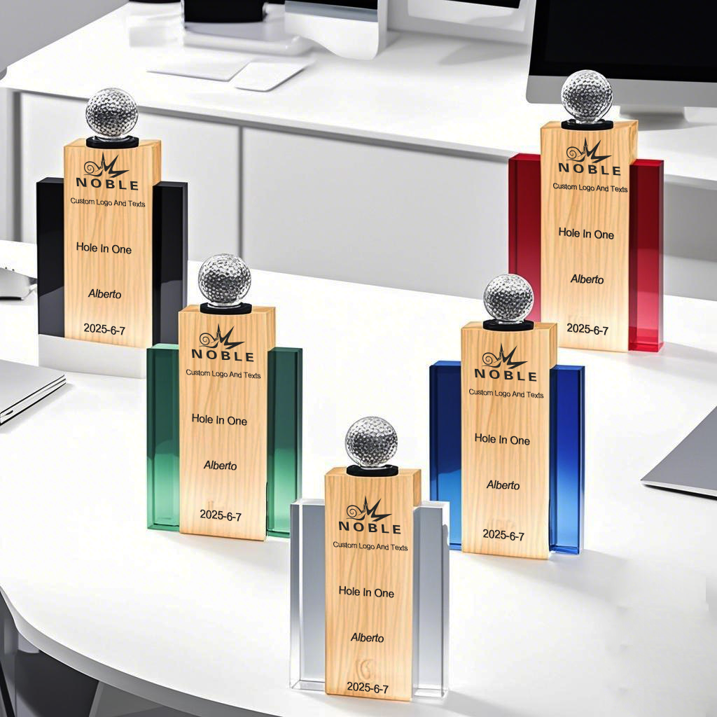 Noble High Quality Crystal Cube Golf Ball Golfer Sports Awards Custom Bespoke Logo Golf A Hole in One Trophy Awards