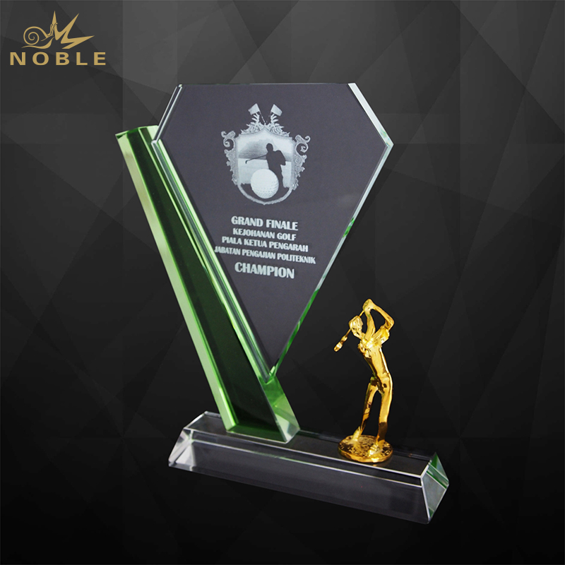 You are here: Home » Sports Trophies » Golf Trophy » Noble High Quality Gold Silver Bronze Metal Figure With Crystal Business Gift Sports Awards Custom Bespoke Logo Golf A Hole in One Trophy Hand Craft