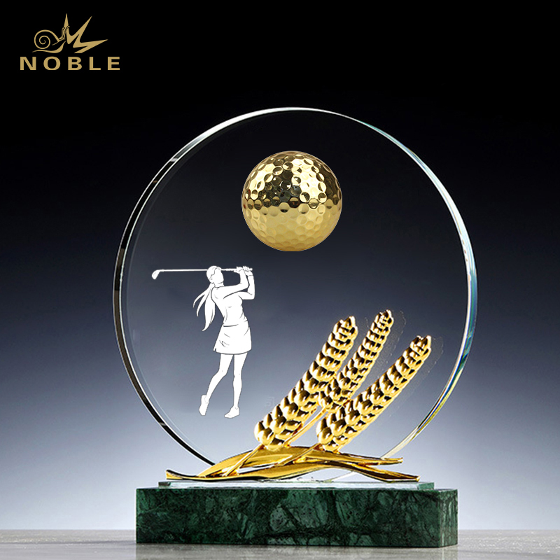 Noble High Quality Crystal Golf Ball With Metal Golfer Sports Awards Custom Bespoke Logo Golf A Hole in One Trophy Hand Craft